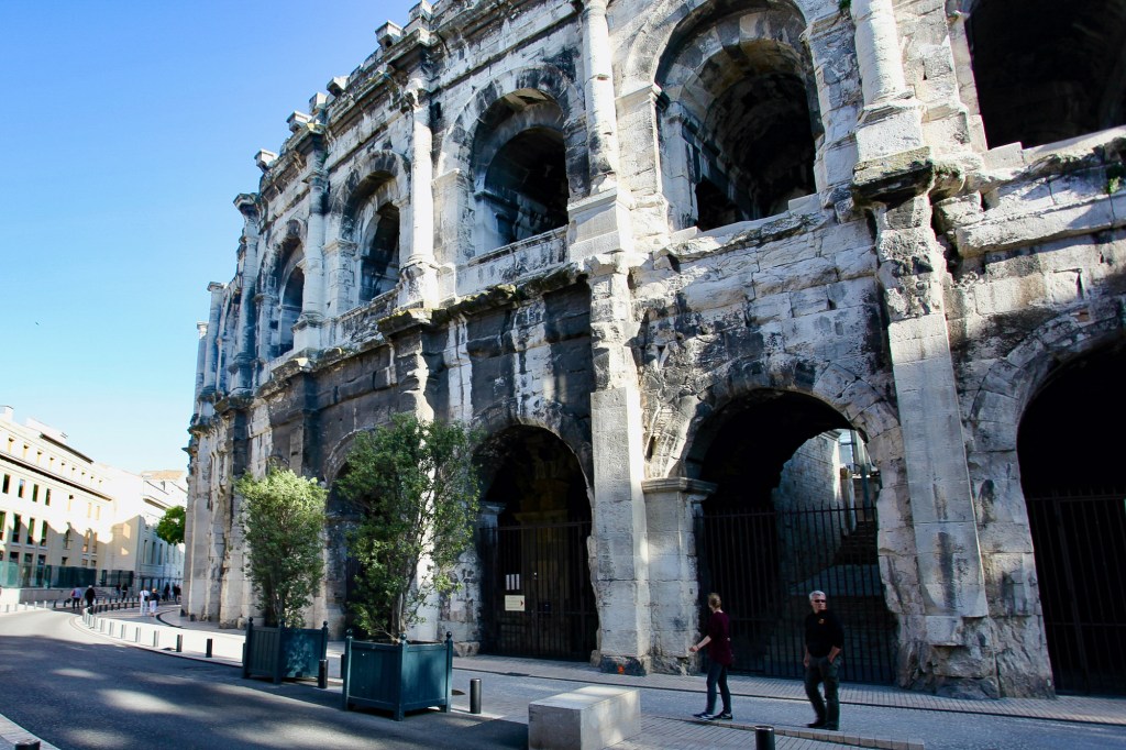 Nîmes is known as the most Roman city outside of Italy, and is home to some of the best-preserved Roman ruins in the world. It was quiet and peaceful during our visit, perfect for walking around with napping babies in strollers. We found a little outdoor cafe with a lovely view of the 2000 year old Arena, which still hosts events today, including bull-fighting. On the way out of Nîmes we were able to spot the Pont du Gard – the highest and best-preserved of all Roman aqueduct bridges.